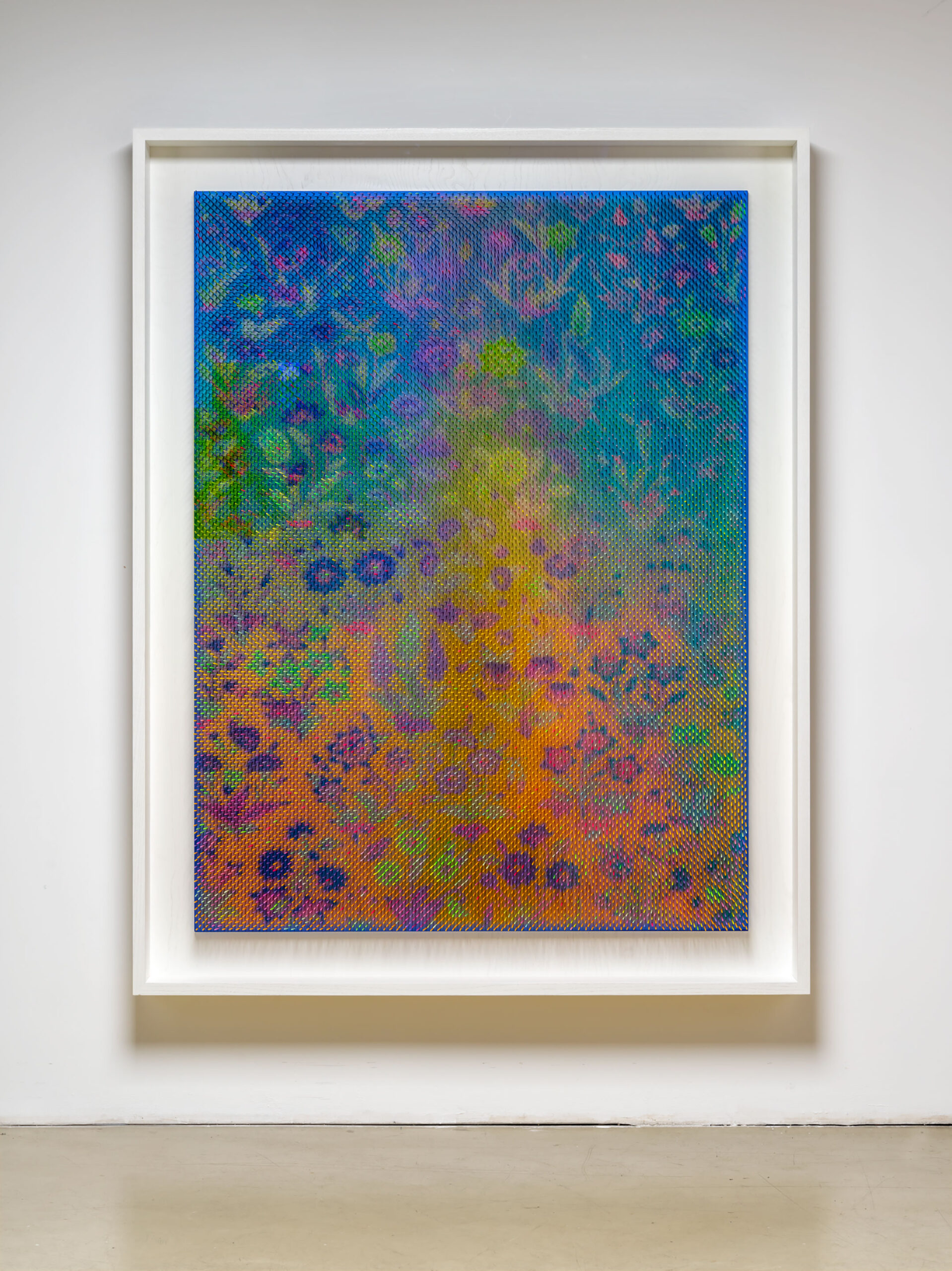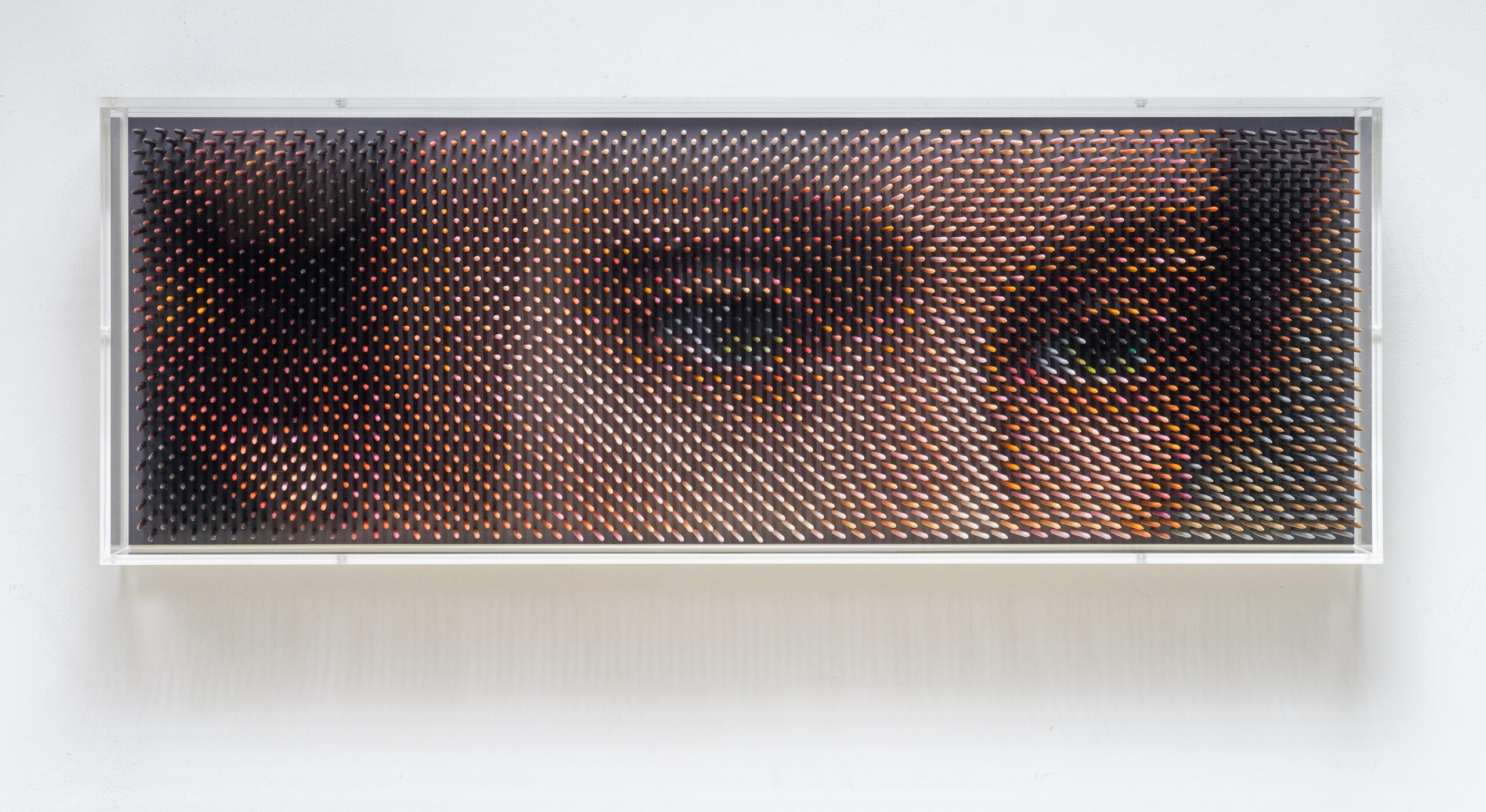 Since studying fine art, Maxim Wakultschik has succeeded in transforming his pictures into an object-like matter using a variety of different materials and self-developed production techniques. Maxim Wakultschik’s art consists of mathematically precise and accurately constructed works, in which a formal order is created out of independent individual parts. In his complex and multi-layered work, he explores the interplay of light and shadow, surface structure and color vibration. The focus lies always on the effect that is created by the reflection of the ambient light and leads to oscillating variations of reality, which constantly challenge us to approach the works proactively. In the encounter with a work of art by Maxim Wakultschik, the smallest movement, the slightest change of perspective leads to amazing new impressions. This makes the works look like kinetic objects – the dividing line between reality and illusion is blurred. We are constantly stimulated to overcome the limits of our perception.